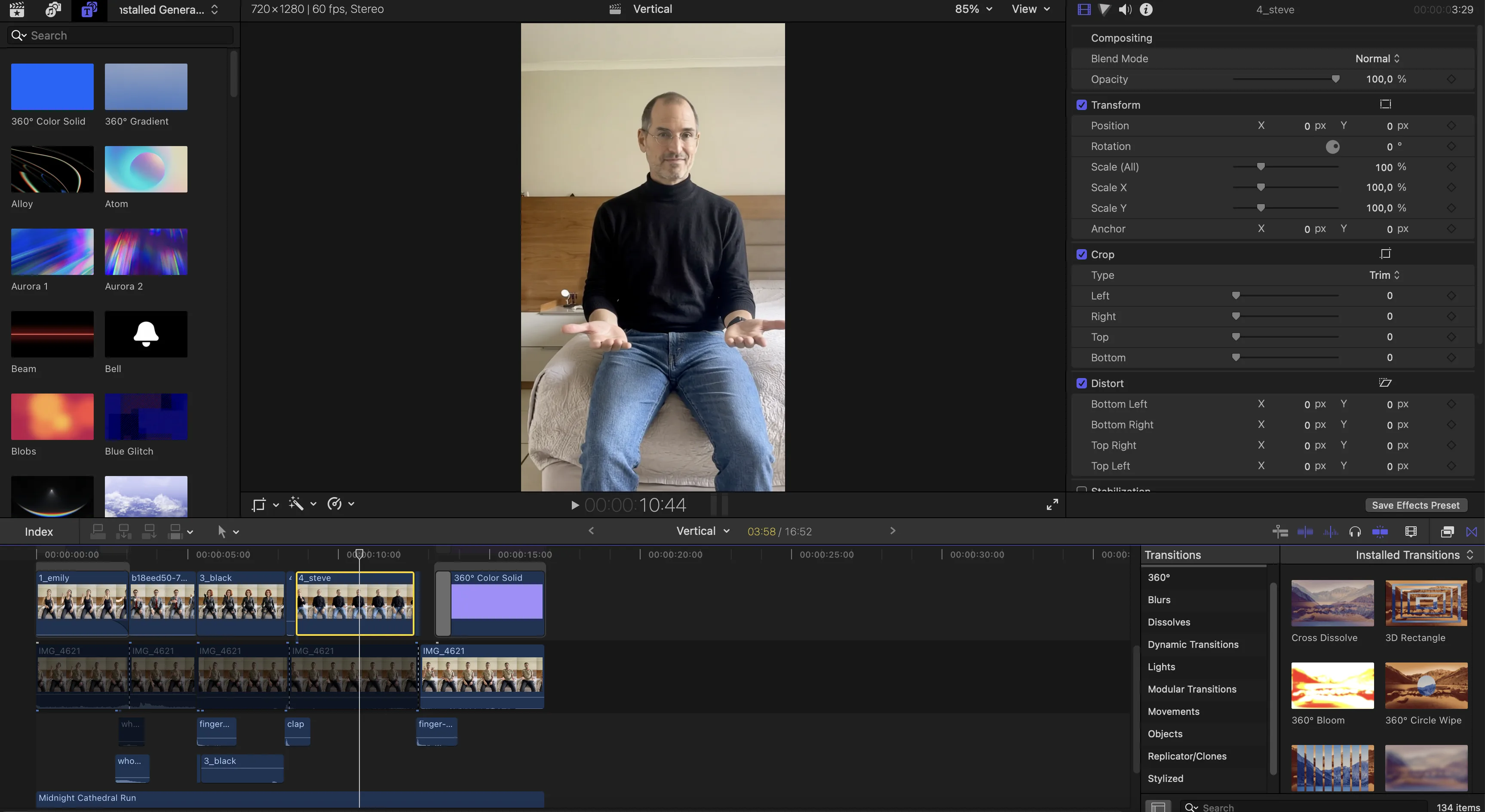 In any standard video editor, I manually cut my source video into sections — one section per celebrity. I was deliberate about where the cuts landed. The timing and natural movement at the cut point makes a big difference to how smooth the final result looks.