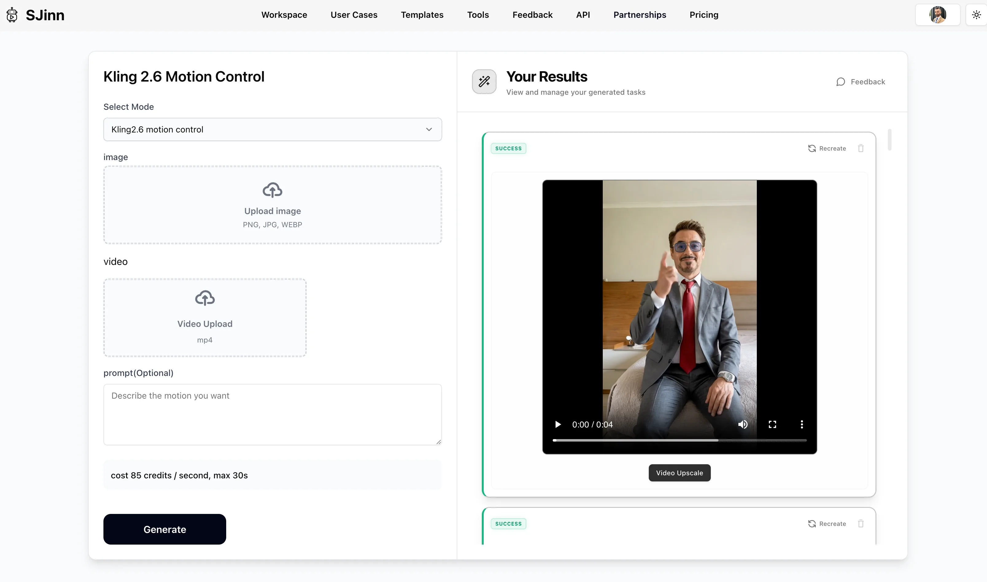 You could also run the motion control step via fal.ai — both work well. I used Sjinn because I had credits to use up and the output quality is solid.
