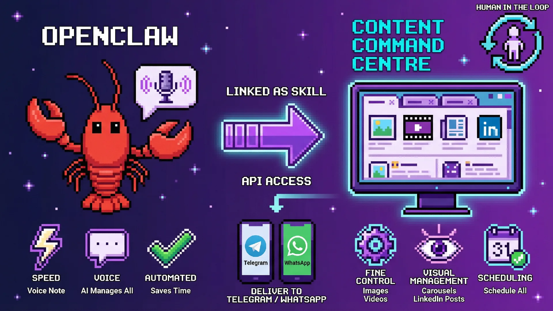 This guide shows you a smarter way to work. It combines the easy voice commands of OpenClaw with a powerful, organized dashboard called the Content Command Centre.